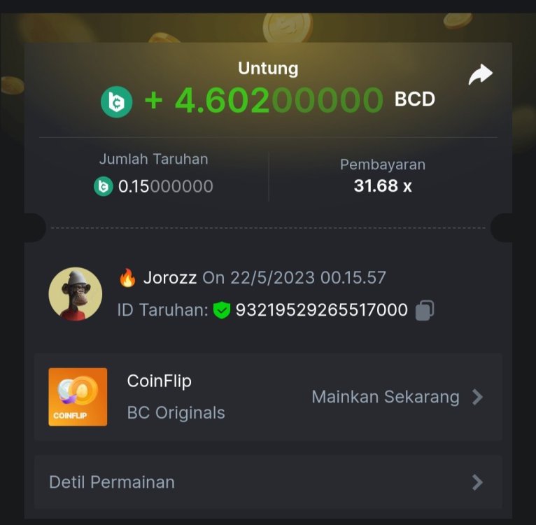 4. EASY 1. Classic Dice x5 https://bc.game/#/sd/117HABJTZXG93N 2. Baccarat Tie x9 https://bc.game/#/sd/117HAE6HJX1S7N 3. Crash x10 https://bc.game/#/sd/117HAOKZZ28AVN 4. Egyptian Adventure x10 https://bc.game/#/sd/117HAV0LKXT4PF 5. Oriental Beauties x20 https://bc.game/#/sd/117HB4734PPMHF 6. Cave Of Plunder x7.5 https://bc.game/#/sd/117HB9GUQAJEOJ 7. Sport Ticket ID : 2258207423246504383 8. Hello Easter x20 https://bc.game/#/sd/117HCEBI88OTG3 9. Lucky Easter x30 https://bc.game/#/sd/117HDI6Q91045V 10. Enable 2FA, Verif Email & Phone MEDIUM 1. Roullet 0 https://bc.game/#/sd/117HEOU1WKNLZN 2. Plinko x76 https://bc.game/#/sd/117HEUUG5J7GNN 3. Keno Single x50 https://bc.game/#/sd/117HF6BSZ4T0YB 4. Ring Of Fortune x99 https://bc.game/#/sd/117HJUOPXQPYQB 5. Sports Ticket ID : 2258248123044466967 HARD 1. Whell 49.5x https://bc.game/#/sd/117I6RI9AWRXN7