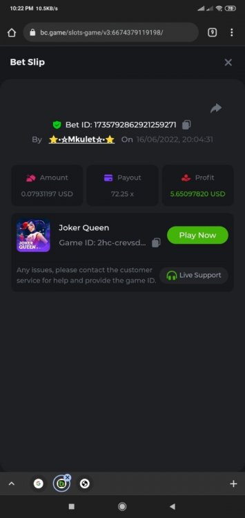 FLASH CHALLENGE WHEEL ,VIDEO POKER & ORENTAL BEAUTY for FILIPINO COMMUNITY START ; May 28 , 2022 6:55PM / PH TIME END : UNTIL THE CHALLENGE IS COMPLETE ANO ANG HAMON? Kuhanin ang 49.5X sa Larong WHEEL Kuhanin ang 22x at 9x sa Larong VIDEO POKER Kuhanin ang 50X o higit pa sa Larong ORIENTAL BEAUTY MGA MANANALO Unang DALAWANGPU na Player na Makakapag post ng 4 Task na kaylangan ang mananalo MAKAKAMIT NA PREMYO $ 4.00 EACH 1st 20 PLAYERS ONLY KARAPAT NA BARYA ☆ Lahat ng mga Barya ay magagamit (Hindi kasama ang JB/GB) ☆ Bawal ang Lumang Taya ☆Walang Minimum na Sukat ng Taya PAANO PUMASOK ☆ I-access ang laro upang piliin ang iyong Bet ID, mag-click sa icon ng Ibahagi (↷) at pagkatapos ay Kopyahin ang link. Bumalik sa paksa, i- paste ang link sa field na "Tumugon sa paksang ito..." ipost ang winning BET SCREENSHOT at LINK ng iyong BET... iLIKE KO YUNG ENTRY/POST NG 1ST 20 NA MAUUNA MAKATAPOS PAGSAMAHIN ANG MGA ENTRY SA IISANG COMMENT/POST BAWAL ANG DI SAMA SAMA SA IISANG COMMENT