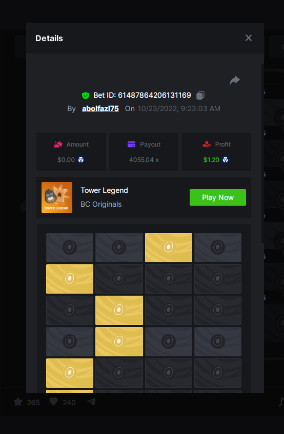 YESLLLLL Posted October 23, 2022 Share Posted October 23, 2022 8 hours ago, Black Tiger said: Read Carefully Before Start To Hunt Daily Challenges #47: Tower LegendHunt :Win the highest pay outMin Payout requirement 100xMin Level 4️Duration Starting : Now End time : 23.59 UTC Time How to Join? Make screenshot + paste your bet link + UID or Profile link To get bet link can check HERE Any coin allowedReward Prizes 1st Place....... $7 BCD2nd Place..... $5 BCD3rd Place...... $4 BCD 🎖4th Place......$3 BCD5th - 10th Place......$1 BCD 🏵 Winners will be announcing next day after Roll Point https://bc.game/#/sd/10VN5SFX26HZ4J Telegram user name: @MAX247 User Id: 3372747 Link to comment Share on other sites More sharing options...