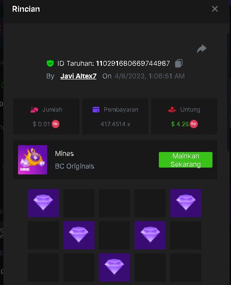 Maksypro Posted April 7, 2023 Share Posted April 7, 2023 ย Read Carefully Before Start To Hunt Daily Challenges #198 MINES ย Hunt : Win the highest multiplier Min Payout requirement 100x Min Level 4 ๏ธDuration Starting : Now End time : 23.59 UTC Time How to Join? Make screenshot + paste your bet link + UID or Profile link Any coin, with min bet 0.01 USD is allowed (jb/bb/bcl not allowed) Reward Prizes 1st Place.....$7 BCD 2nd Place.....$5 BCD 3rd Place.....$4 BCD 4th Place.....$3 BCD 5th Place.....$2 BCD ๐ต Winners will be announcing next day after Roll Point! 2 Link to comment Share on other sites More sharing options...