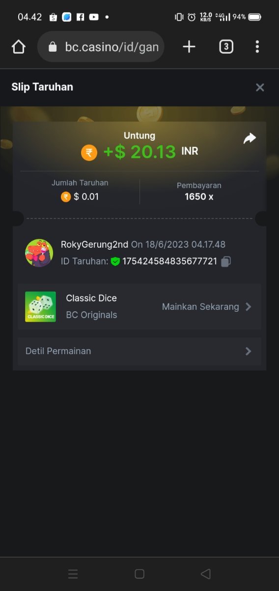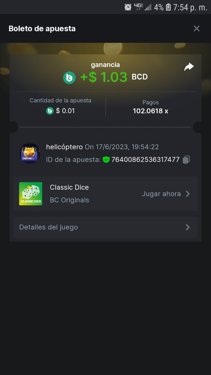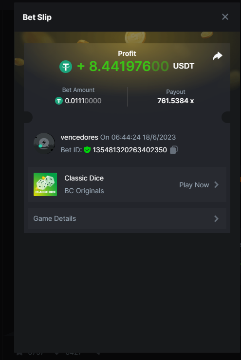 Maksypro Posted June 17, 2023 Share Posted June 17, 2023 Read Carefully Before Start To Hunt Daily Challenges #269 CLASSIC DICE ย Hunt : Win the highest pay out Min Payout requirement 100x Min Level 4 ๏ธDuration Starting : Now End time : 23.59 UTC Time How to Join? Make screenshot + paste your bet link + UID or Profile link Any coin, with min bet 0.01 USD is allowed (jb/bb/bcl not allowed) Reward Prizes 1st Place.....$7 BCD 2nd Place.....$5 BCD 3rd Place.....$4 BCD 4th Place.....$3 BCD 5th Place.....$2 BCD ๐ต Winners will be announcing next day after Roll Point! Link to comment Share on other sites More sharing options...